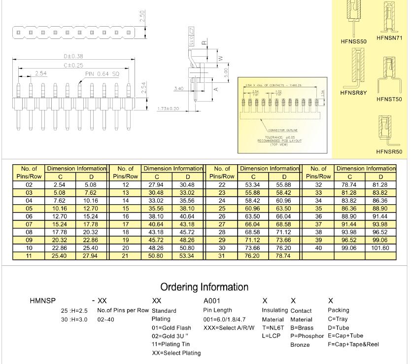 2.54mm single row Right angle SMT Male header HMNSPXX