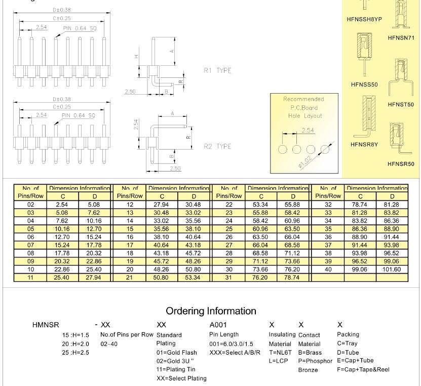 Your current location: Home > Products> Product> > 2.54mm Male header HMNSRXX
