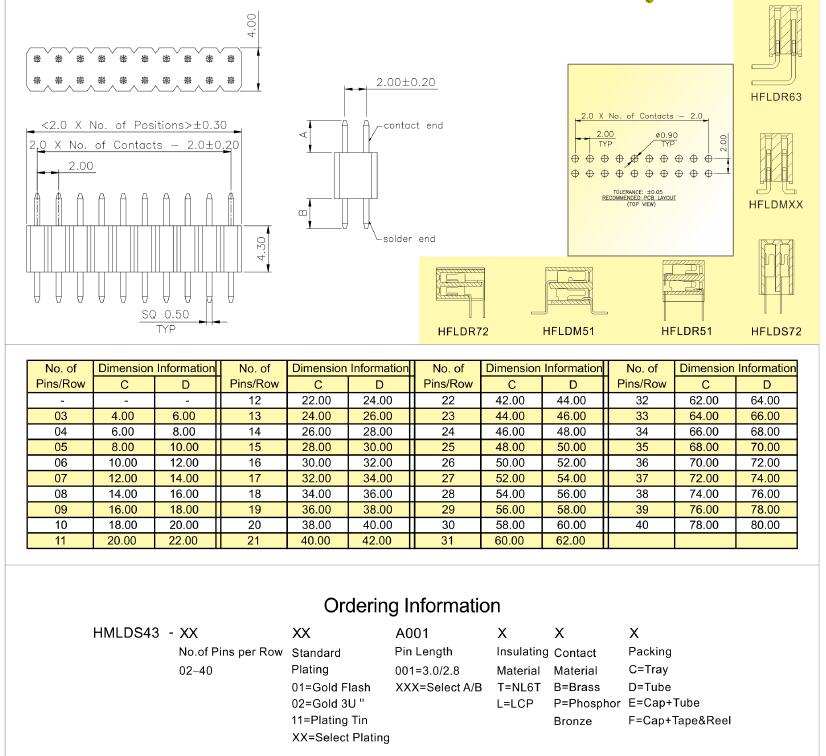 2.0mm Male header HMLDS43 H=4.3