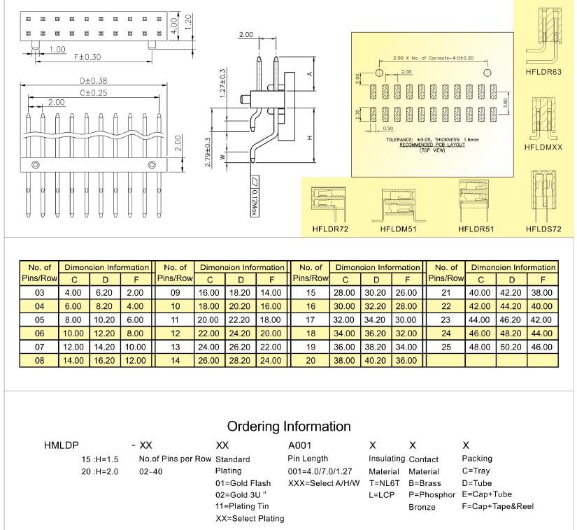 2.0mm pitch double row right angle SMT pin header