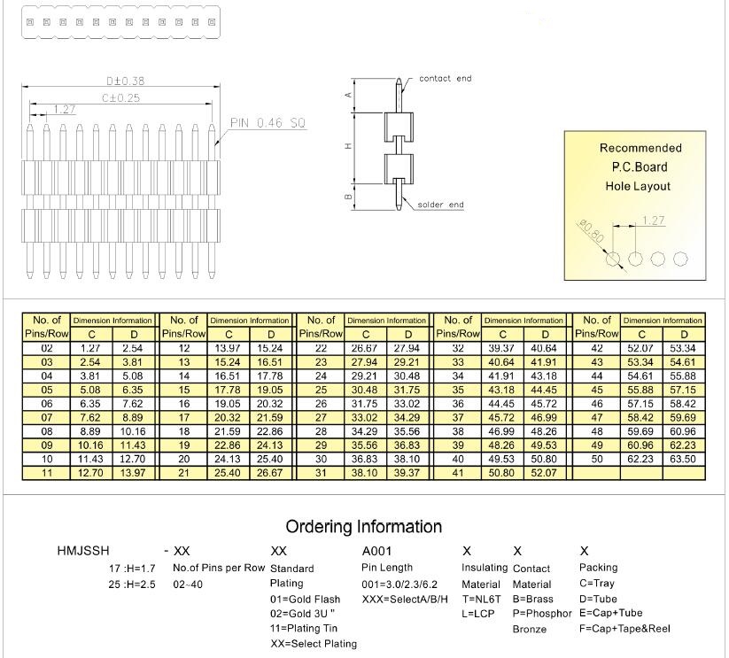 1.27mm Male header 0.46 SQ HMJSSHXX