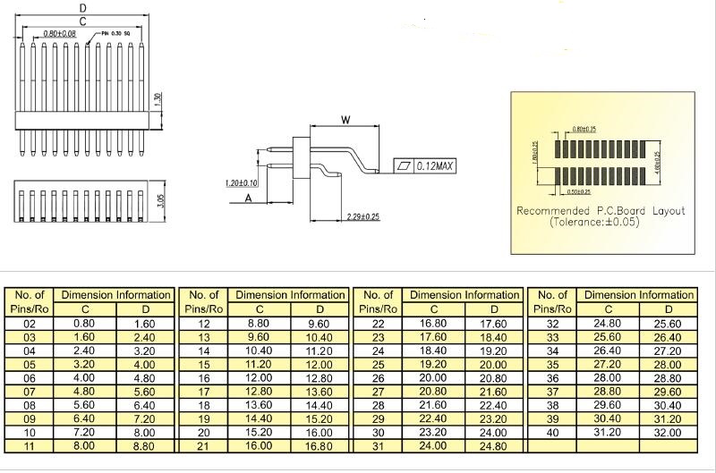 0.8mm x1.2mm pitch dual row right angle SMT male header
