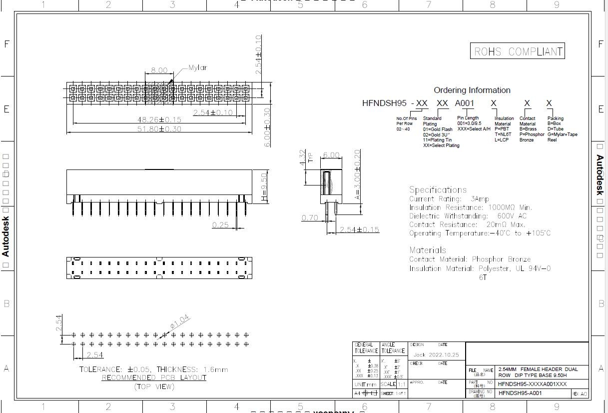 2.54mm pitch 2x20pin male header alternative Hirose HIF3H-40PB-2.54DSA