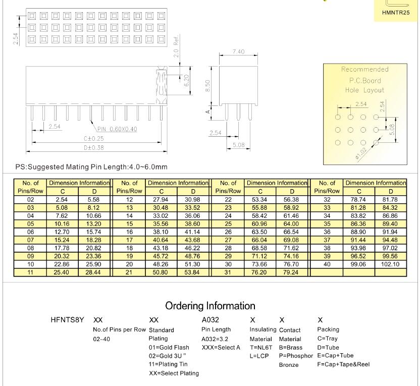 2.54mm triple row DIP female header